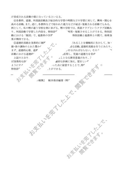 [PB3080] 特別活動の指導法(小学校)1単位目、合格レポート