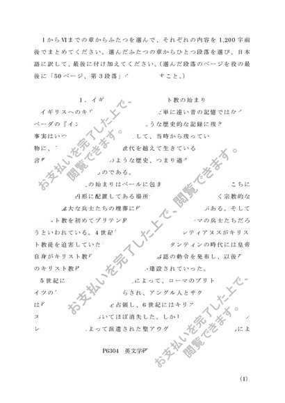 P6304【A評価】【合格レポート】英文学研究、第1設題