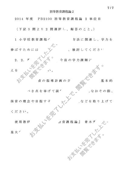 【PB2100】 初等教育課程論 2単位目