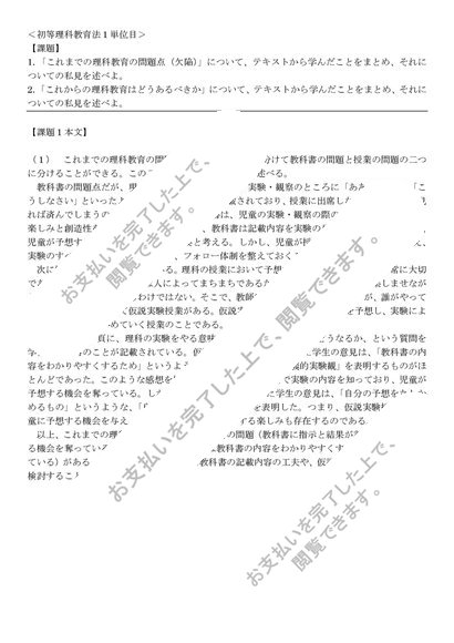 [PB2140] 初等理科教育法、1単位目、合格レポート
