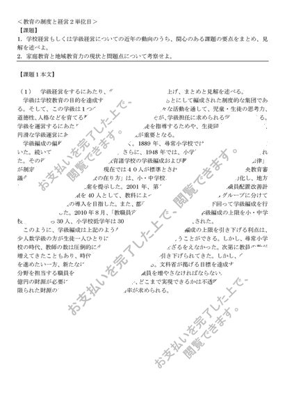 [PA1030] 教育の制度と経営 、2単位目、合格レポート