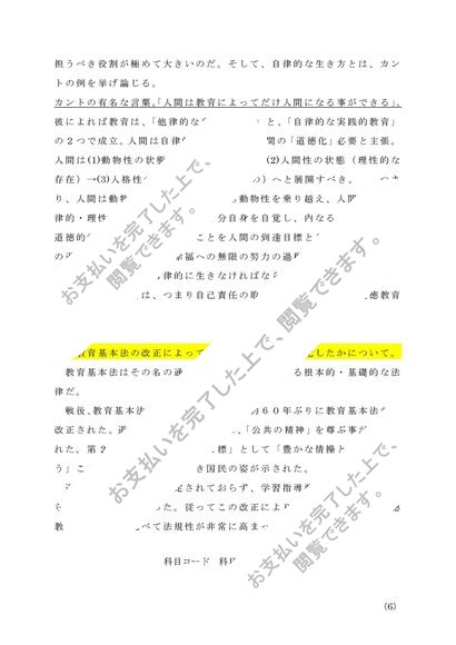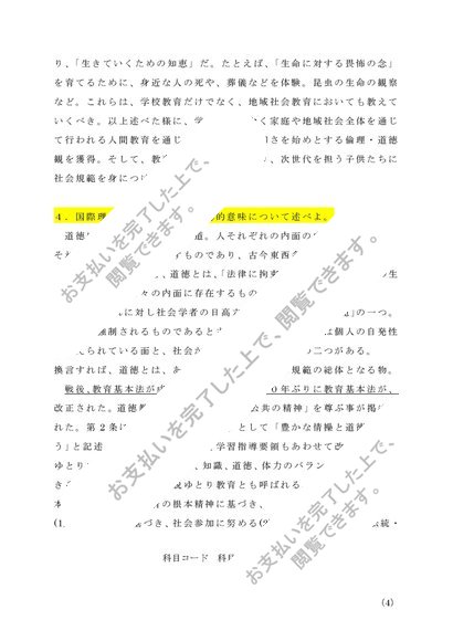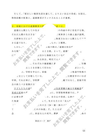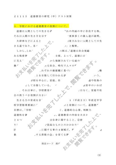 【佛教大学通信】 Z1115 道徳教育の研究(中) テスト対策 【6題解答案】