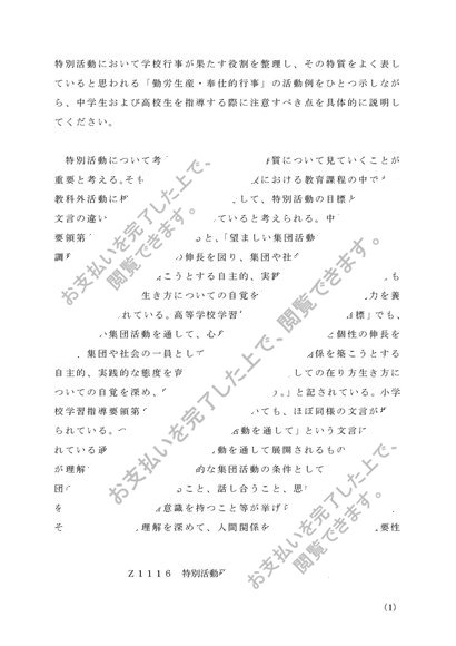 【佛教大学通信】 Z1116 特別活動研究(中・高) 【レポート 第1設題】