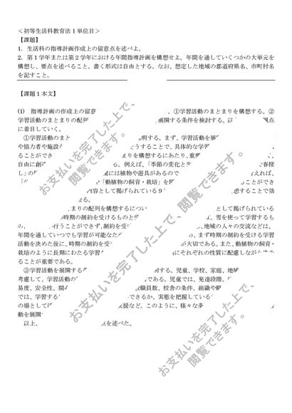[PB2150] 初等生活科教育法、1単位目、合格レポート