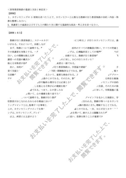 [PB3100] 初等教育相談の基礎と方法、1単位目、合格レポート