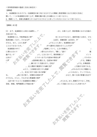 [PB3100]初等教育相談の基礎と方法、2単位目、合格レポート
