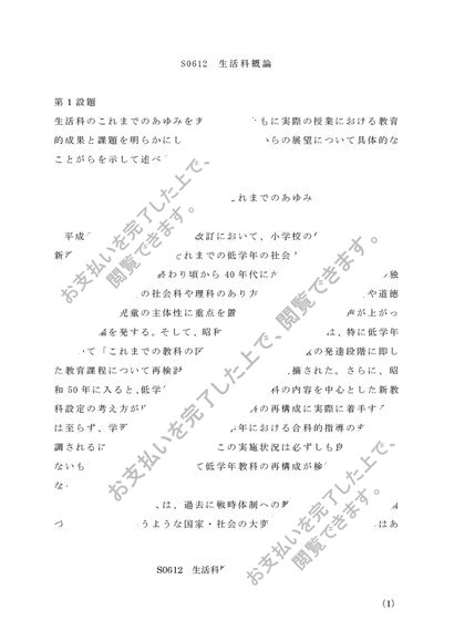 【佛教大学 通信課程 2015】 S0612生活科概論 第1設題