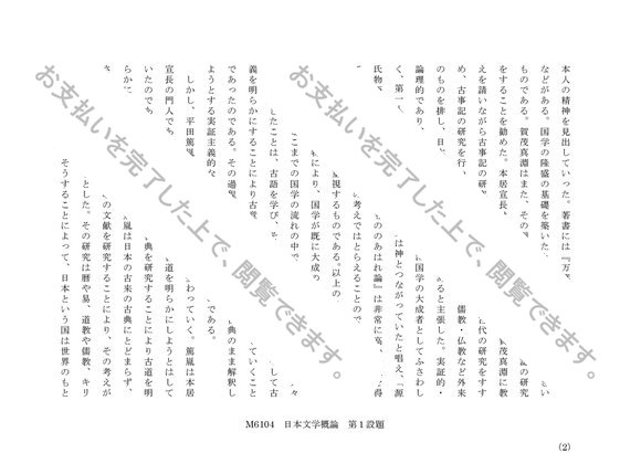佛教大学 M6104 R0111 日本文学概論 第一設題