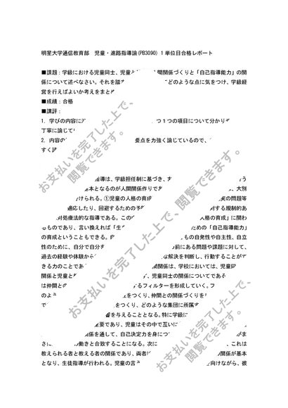 【2014】児童・進路指導論 PB3090 1単位目 合格レポート