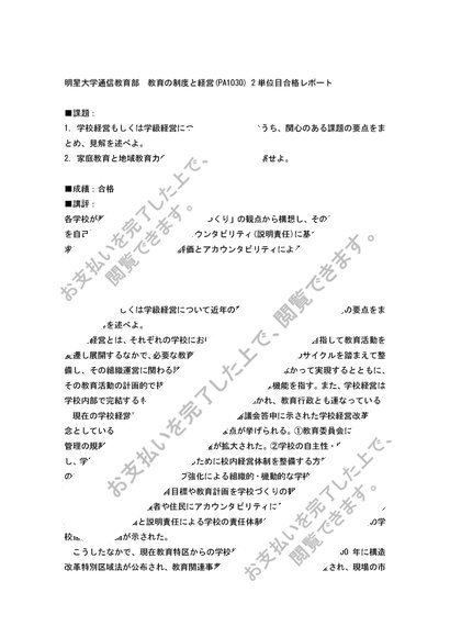 【2014】教育の制度と経営 PA1030 2単位目 合格レポート