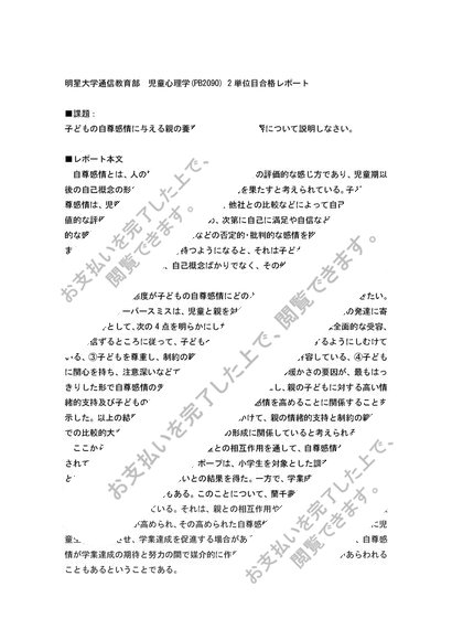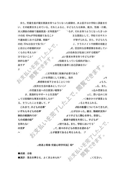 【2014】児童心理学 PB2090 2単位目 合格レポート