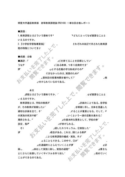【2014】初等教育課程論 PB2100 1単位目 合格レポート