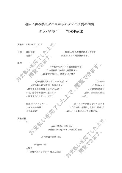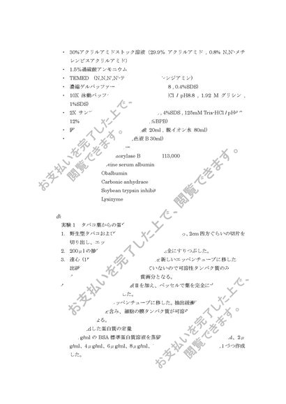 遺伝子組み換えタバコからのタンパク質の抽出、タンパク質定量とSDS-PAGE
