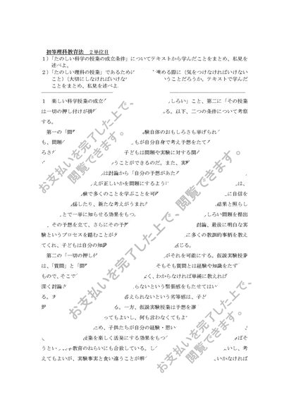 明星大学 初等理科教育法 1&2単位目合格レポート