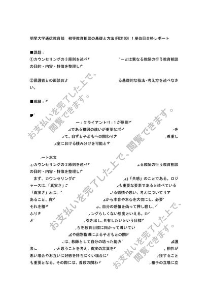 【2014】初等教育相談の基礎と方法 PB3100 1単位目 合格レポート