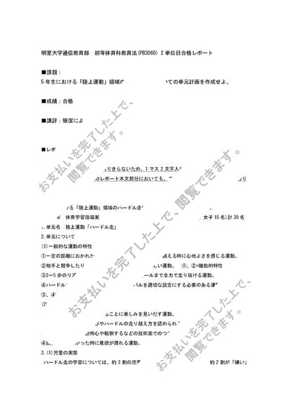 【2014】初等体育科教育法 PB3060 2単位目 合格レポート