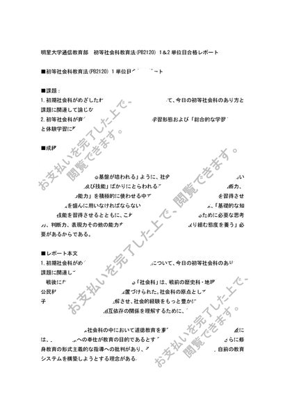 初等社会科教育法 【1・2単位目セット】 PB2120 合格レポート