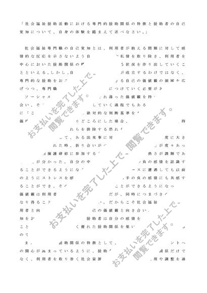 相談援助「社会福祉援助活動における、専門的援助関係の特徴と、援助者の自己覚知について、自身の体験を踏まえて述べなさい。」