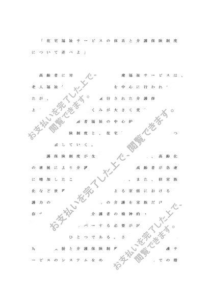 在宅福祉サービスの体系と介護保険制度について述べよ。 A評価