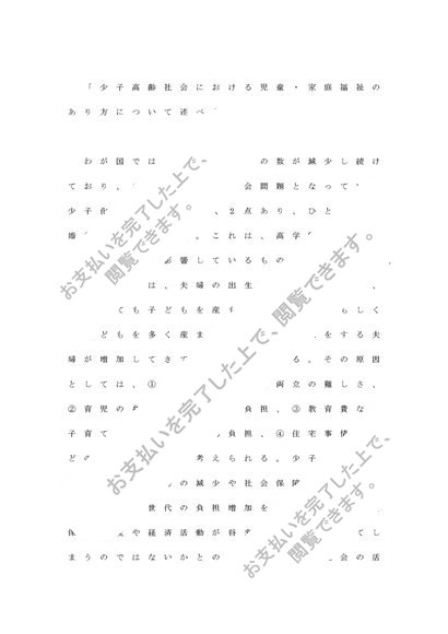 少子高齢社会における児童・家庭福祉のあり方について述べよ。 A評価