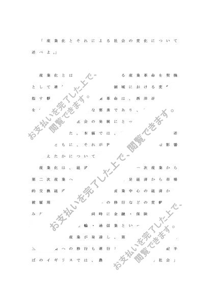 産業化とそれによる社会の変化について述べよ。 A評価