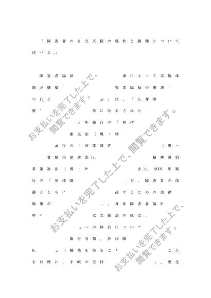 障害者の自立支援の現状と課題について述べよ。 A評価