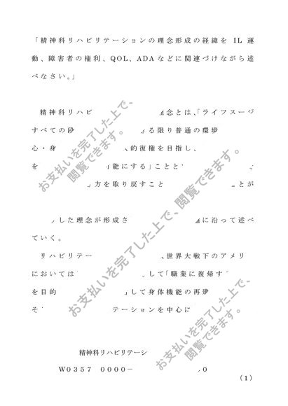 W0357 精神科リハビリテーション 第1設題