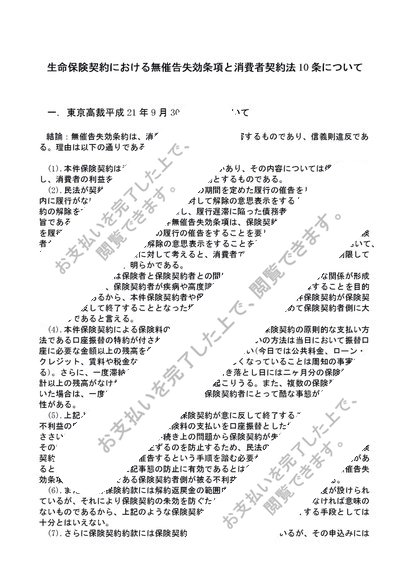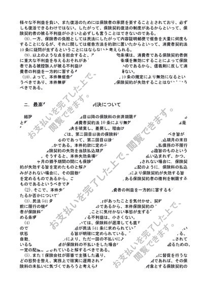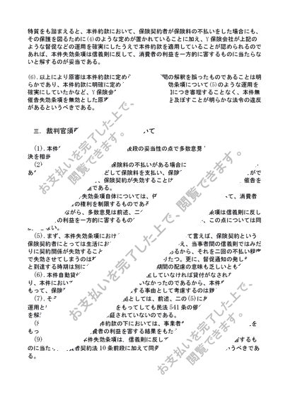 生命保険契約における無催告失効条項と消費者契約法10条について