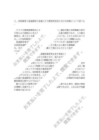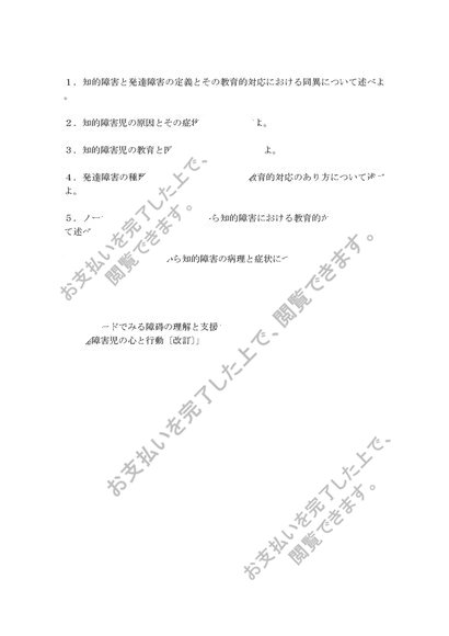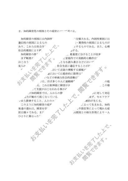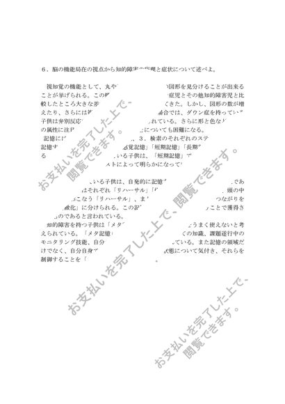 S0833 知的障害児の生理・病理 科目最終試験6題セット(合格済み)