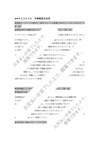 ★明星大学 中等教育方法学 PC3040 科目試験対策 過去問解答例