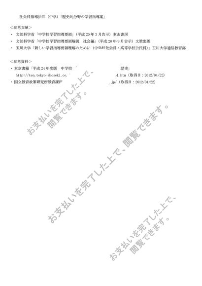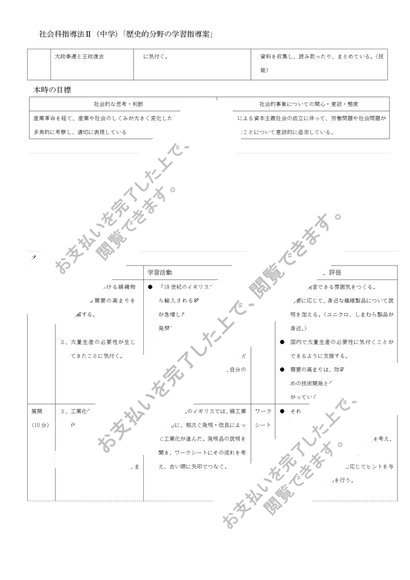 【玉川大学】社会科指導法Ⅱ(中学)「歴史的分野の学習指導案」