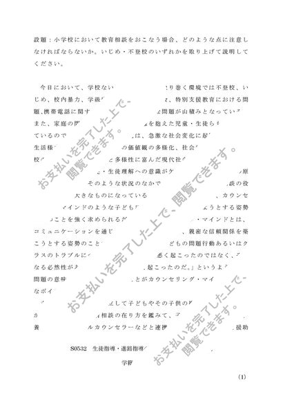 【2017年度最新】S0532 生徒指導・進路指導の研究(初等) レポート 第一設題 A評価 佛教大学
