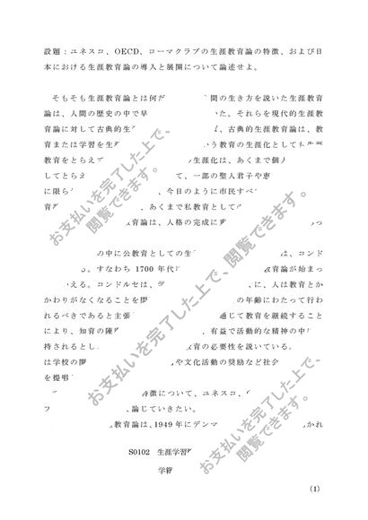 【2017年度最新】S0102 生涯学習概論 レポート 第一設題 A評価 佛教大学