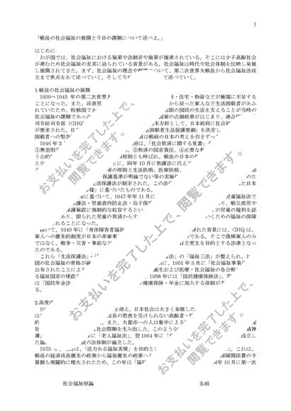戦後の社会福祉の展開と今日の課題について