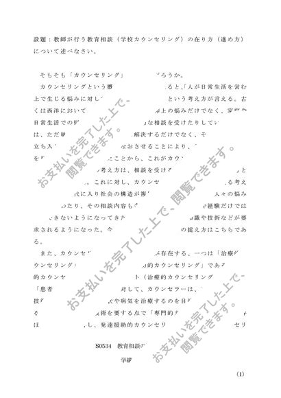 【2017年度最新】S0534 教育相談の研究 レポート 第一設題 A評価 佛教大学