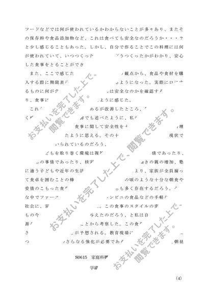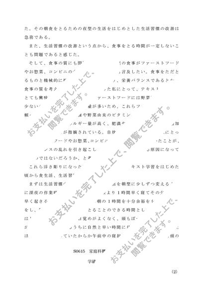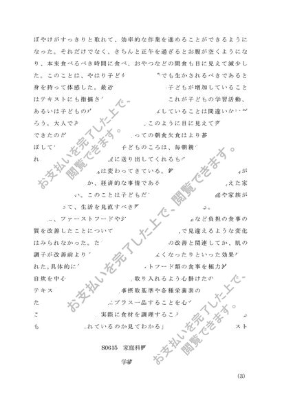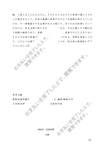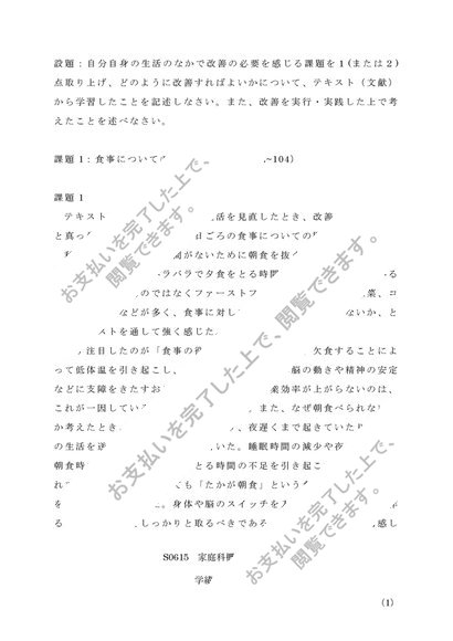 【2017年度】S0615 家庭科概論 レポート 第一設題 A評価 佛教大学