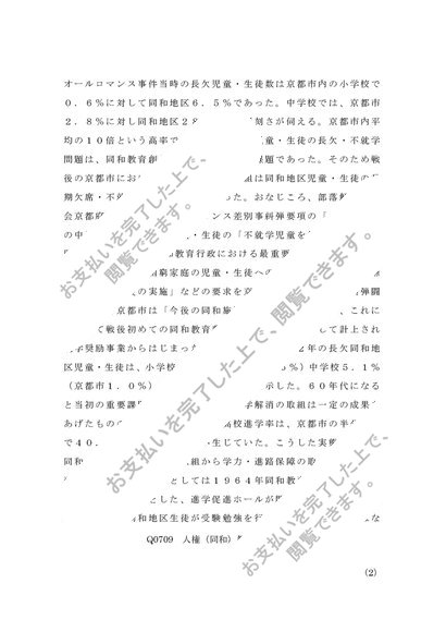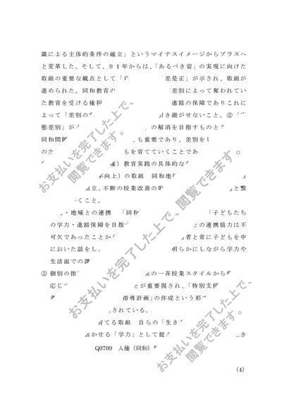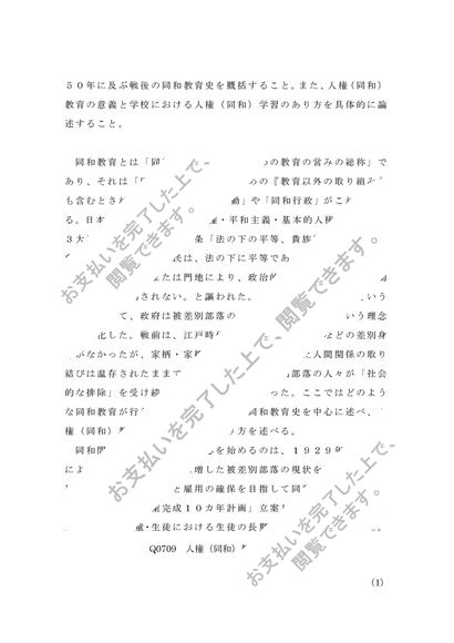 Q0709人権(同和)教育 50年に及ぶ戦後の同和教育史を総括すること。