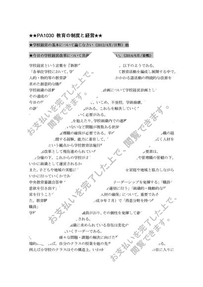★明星大学 教育の制度と経営 PA1030 科目試験対策 過去問解答例