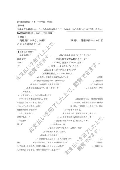 [WB1010]健康・スポーツ科学論 1単位目 2単位目 合格レポート
