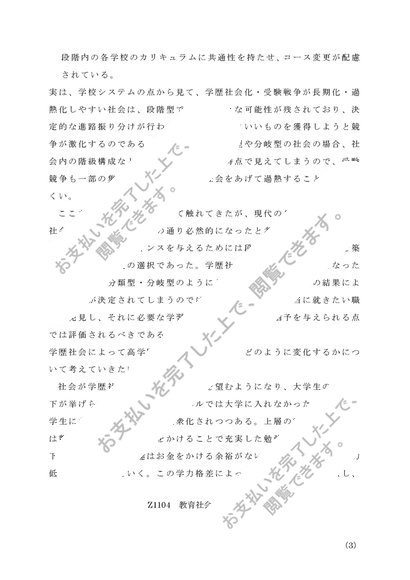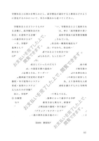Z1104教育社会学 【第一設題】 学歴社会とは何かを明らかにし、高学歴化が進行すると教育はどのように変化するかについて