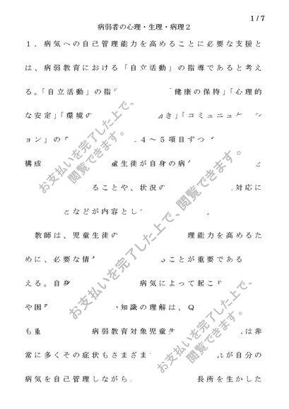 【PL2040】 病弱者の心理・生理・病理 2単位目