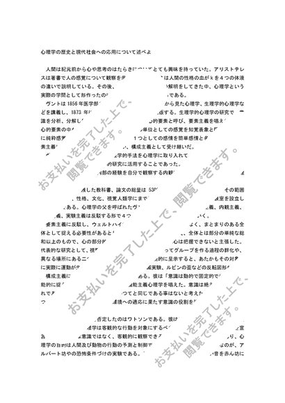 心理学入門レポートA評価 心理学の歴史と現代社会への応用について述べよ