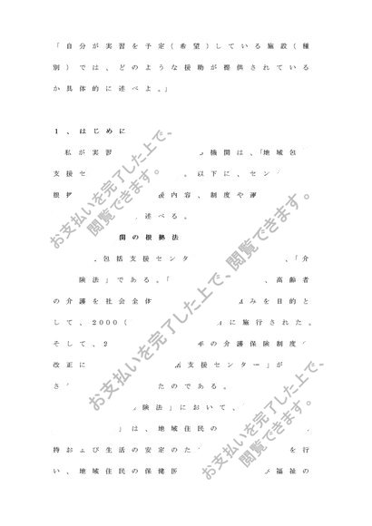 「自分が実習を予定(希望)している施設(種別)では、どのような援助が提供されているか具体的に述べよ。」