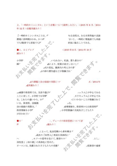 ■【2016-15】【明星大学】【保育の内容(特例)】過去問と回答例