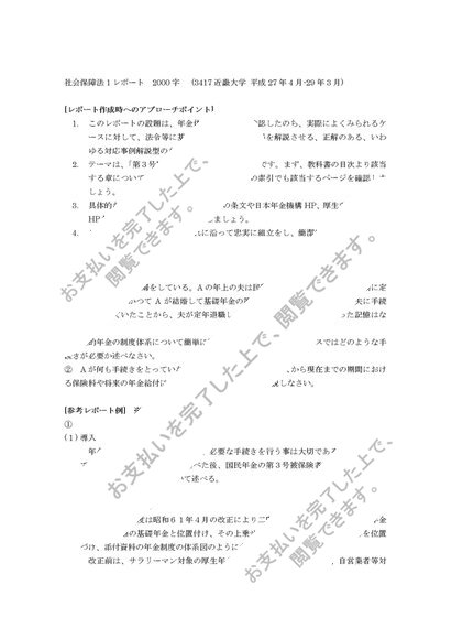 社会保障法①レポート(3417近畿大学 平成27年-平成29年3月)