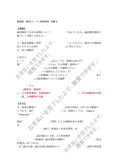 平成27~28年、日大通信、英語史(科目コード N30300)分冊2、合格レポート