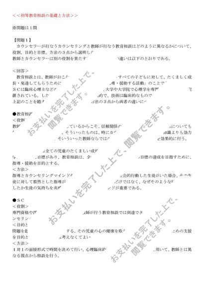 (明星大学テスト試験対策・7科目お得セット)【過去問と解答】児童進路指導論、教育原理、初等教育相談の基礎と方法、児童心理