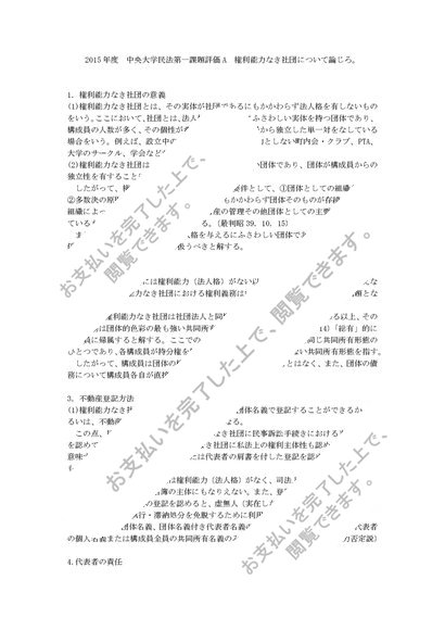 2015年度中央大学民法第一課題 評価A 権利能力なき社団について論じろ