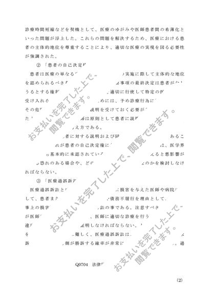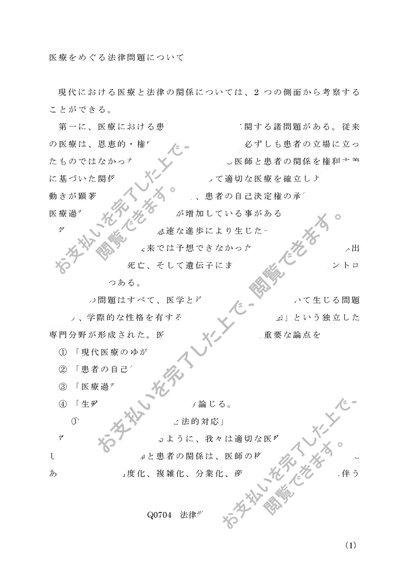 Q0704法律学概論【第二設題】医療をめぐる法律問題についてUP
