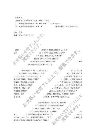 明星大学 重複障害LD等の心理生理病理(PL3070)1単位 合格レポート